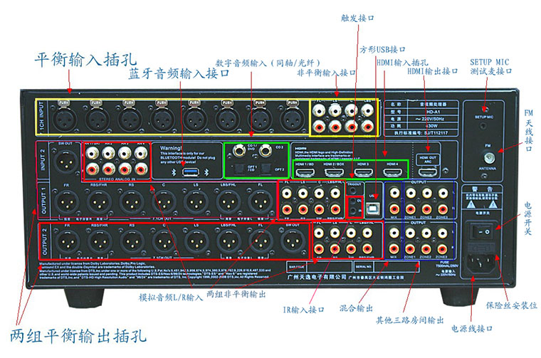 音频处理的其他功能:分组音调、11频段均衡器;独特的14.2完全平衡输出允许AV和HIFI;